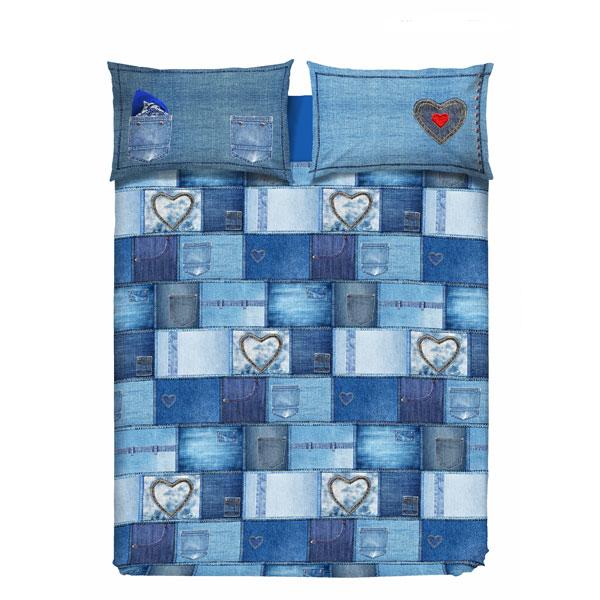 Denim Patch Parure copripiumino stampato con tecnologia digitale in alta risoluzione su tessuto 100% cotone pettinato di alta qualità