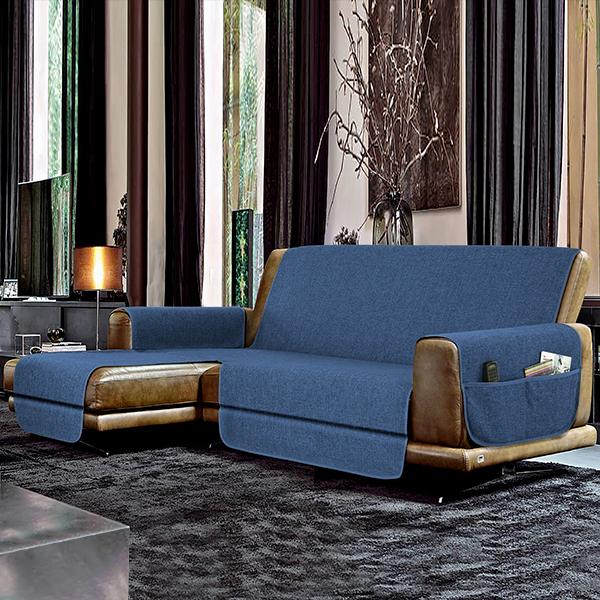 Copri divano, salva divano antiscivolo con penisola a SINISTRA VISTA FRONTALMENTE. Tessuto 100% polyestere melange con trattamento antiscivolo sul retro (pvc + silicone stampato). Con due comode tasche portaoggetti sui braccioli.