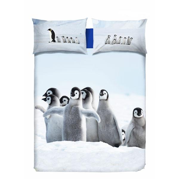 Pinguini Parure copripiumino stampato con tecnologia digitale in alta risoluzione su tessuto 100% cotone pettinato di alta qualità