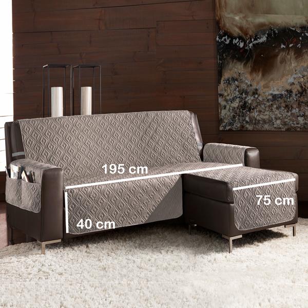 SLIPPY PLUS copridivano-salvadivano trapuntato ANTISCIVOLO con penisola: seduta 195 cm - 245 cm e 290 cm (esclusi i braccioli) con penisola DESTRA (vista frontalemnte). Con due comode TASCHE portaoggetti sui braccioli