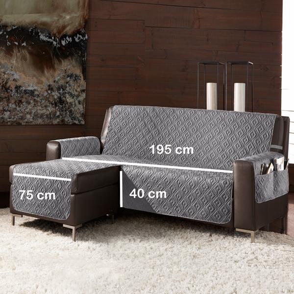 SLIPPY PLUS copridivano-salvadivano trapuntato ANTISCIVOLO con penisola: seduta 195 cm - 245 cm e 290 cm (esclusi i braccioli) con penisola SINISTRA (vista frontalemnte). Con due comode TASCHE portaoggetti sui braccioli