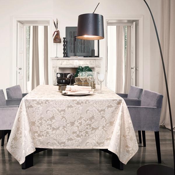 Disponibile nelle misure 150x180 - 150x220 - 150x250 -150 x 300 - 150x350 - 150x400 e 150x450. A parte anche i tovaglioli 50x50 cm.